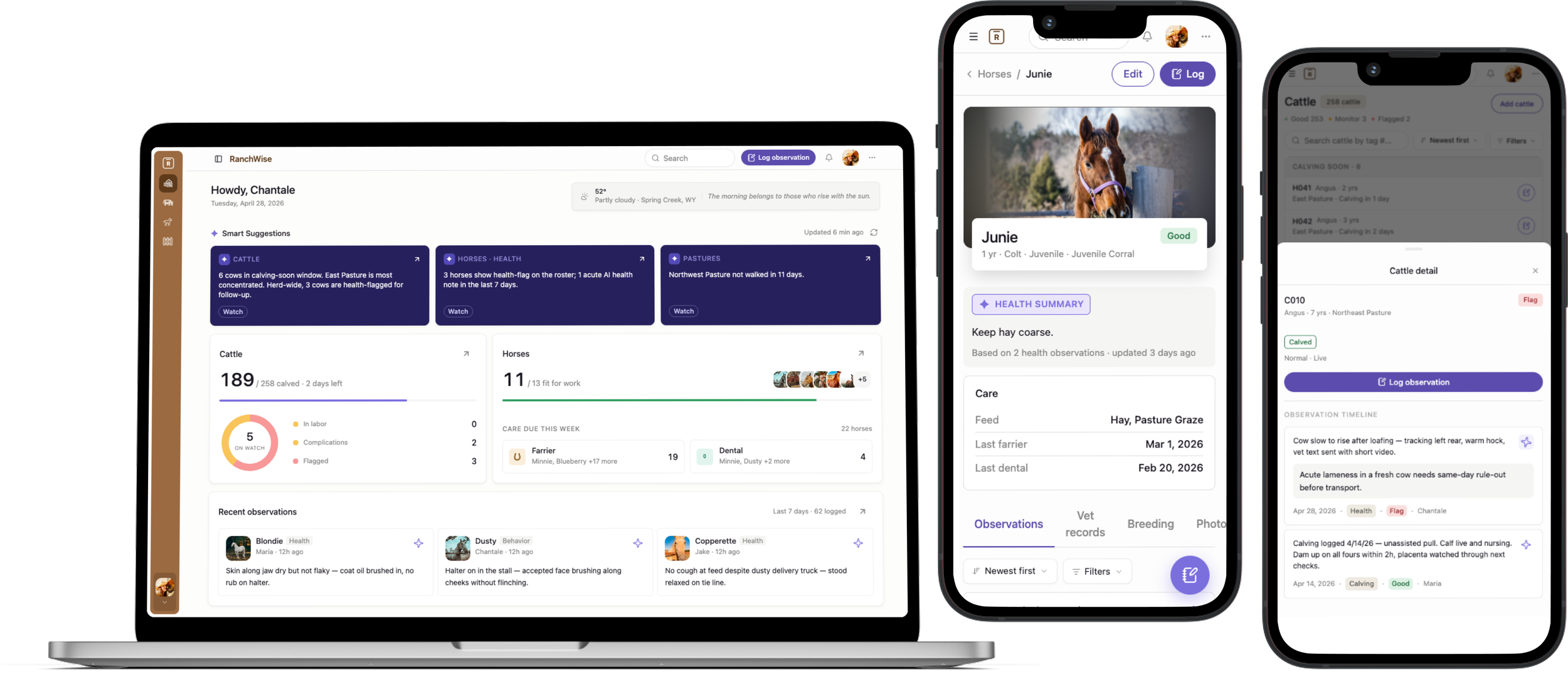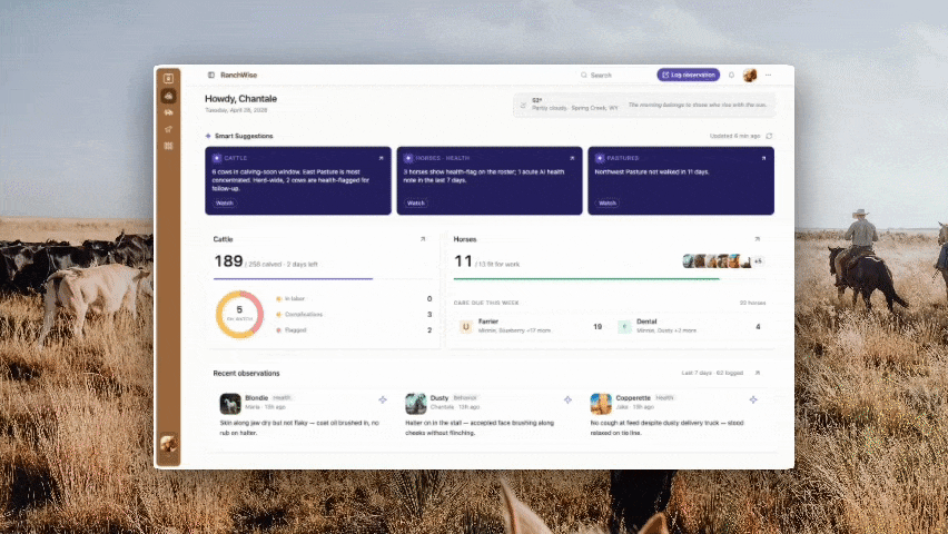An AI-powered ranch management platform for horse and cattle breeding operations built and designed solo using an AI-assisted workflow.